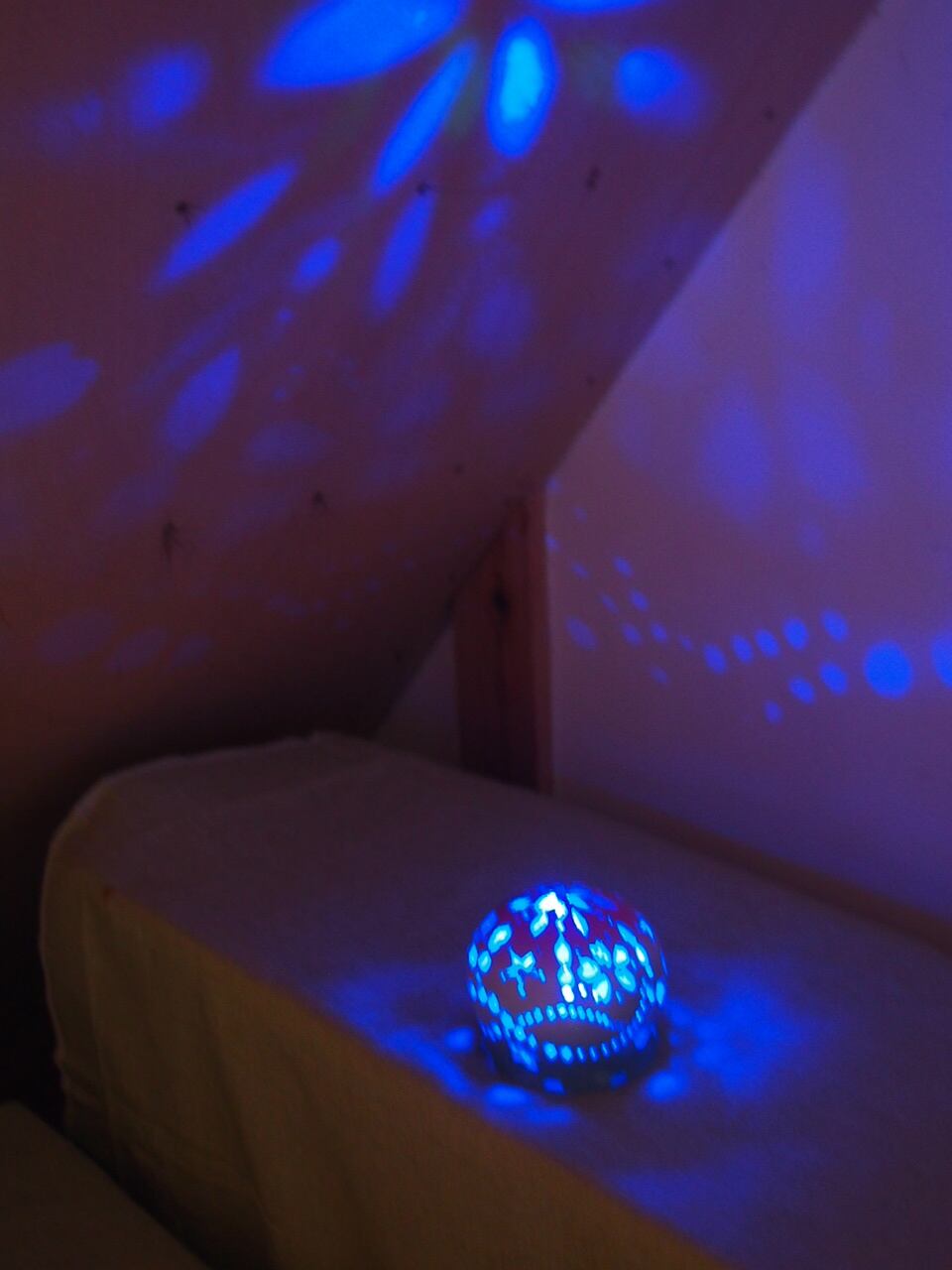 W,D 共に11,5 H9,5 (cm) この陶器の灯りは桜と柳の形をくりぬいています。この中にはLED3色が色を変えながら微妙な色合いを醸し出し、天井にはその光が映ります。写真の左から3番と4番は違う陶器の灯りですが同じ感じになります。中には白熱電球でなく一番右の写真の円形台付きLEDを入れます。赤、青、緑の3種の色電球がついていて電池式です。単4電池が3個入っています。光が弱くなったら交換します。