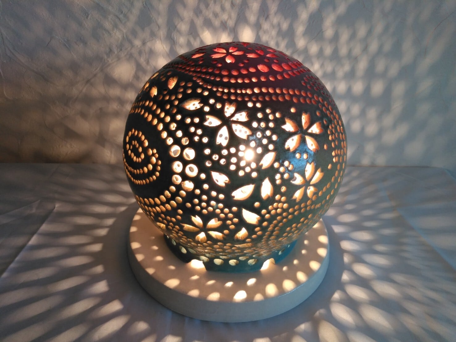 心震わすレースの光 やす波の陶器ランプシェードをご覧ください
