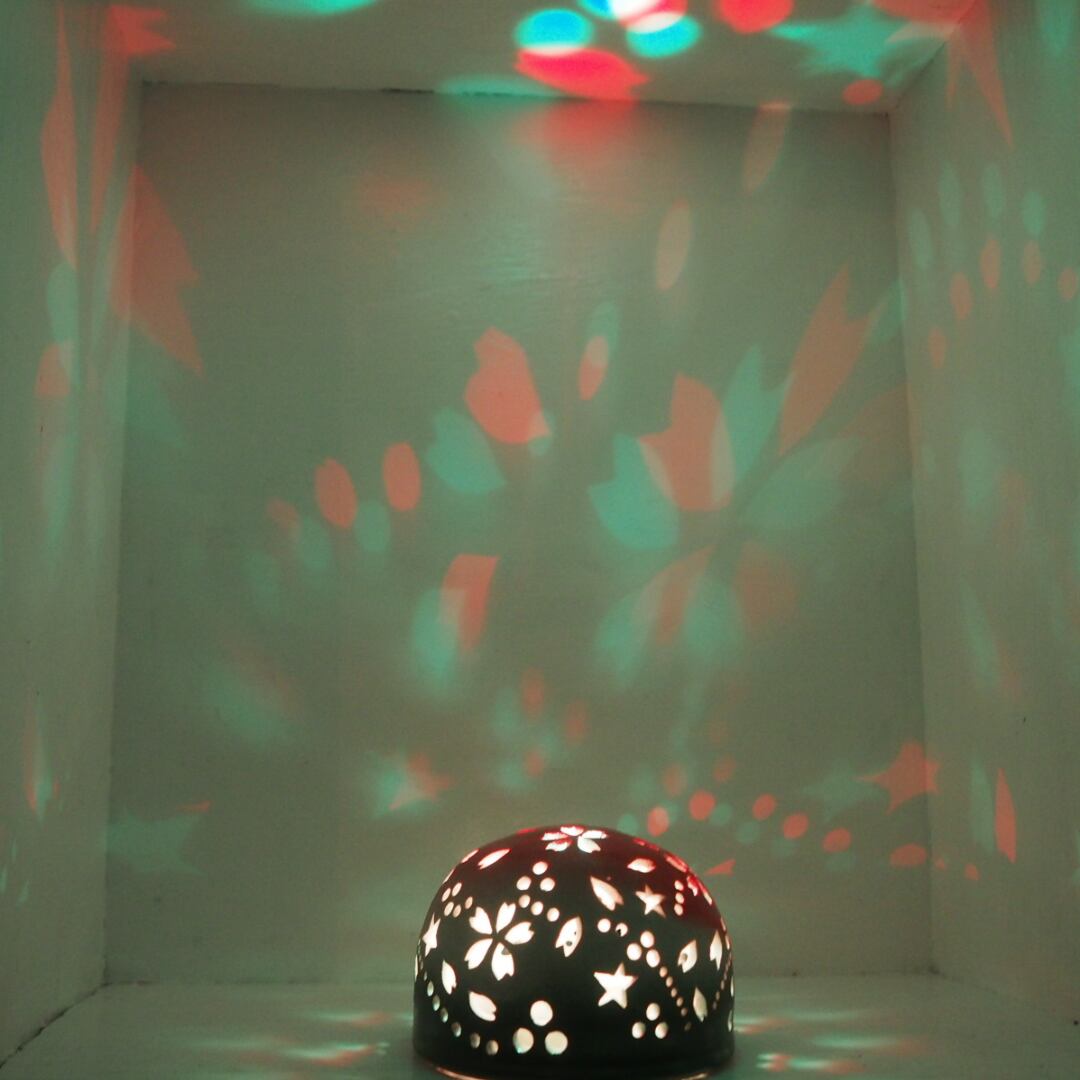 陶器ランプシェード『LED桜・古代ゴス』(L0010)は、美しい桜をモチーフにした舞い散るデザインが特徴のランプシェードです。LED電池式を入れることで、3色のLEⅮ電球が点滅するため、微妙な色合いの光が出て幻想的な雰囲気を醸し出します。